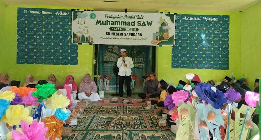Alhamdulillah kami SD Negeri Sapugara Memperingati Maulid Nabi Muhammad saw, penceramah Al Uztad Rizaldi, Lc. dengan tema '' Meneladani Akhlak Mulia Nabi Muhammad SAW"